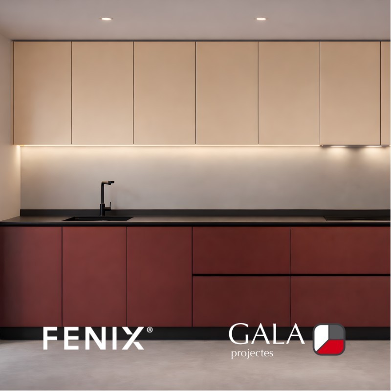El laminado FENIX está pensado para el uso real: manos, roces, limpieza diaria. Su acabado ultramate reduce reflejos y ayuda a mantener una estética limpia y uniforme. Además, su carácter antihuellas (y de mantenimiento sencillo) te permite disfrutar del color sin estar “esclavo” de la limpieza.